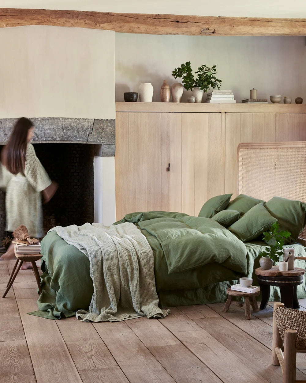 Matching Greenstone linen sheets and pillowcases are available separately to complete your bedding story.