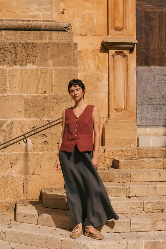 CIARA Linen Slip Skirt | Rosy Brown