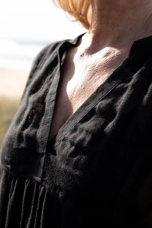 Gauze Linen Dress | Black -25% OFF