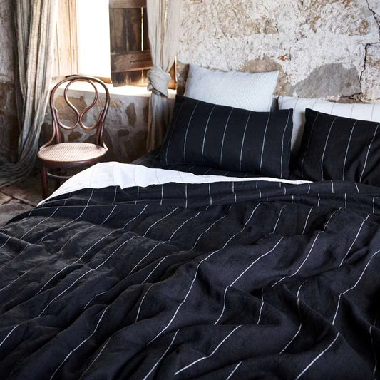 French Linen Flat Sheet | Black Stripe | OEKO-TEX® certified