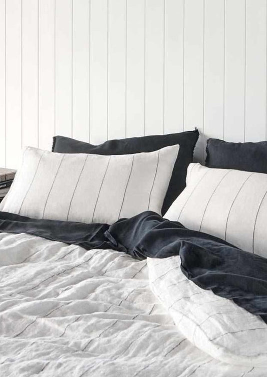 French Linen Pillowcases | Charcoal Stripe