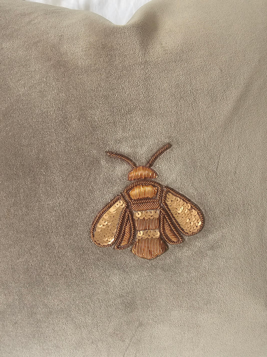 HAND EMBROIDERED - Bee Cushion | Green