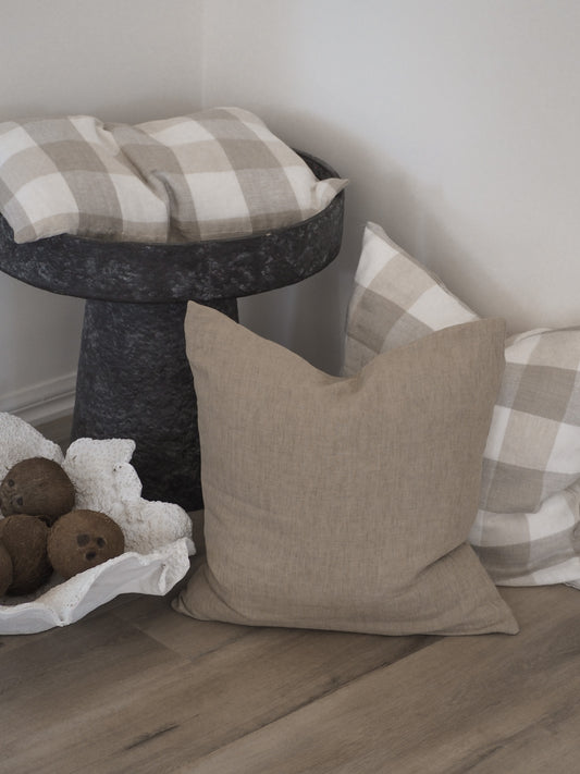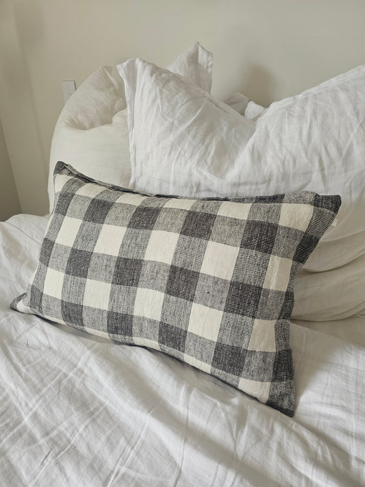 LINEN CUSHION COVER - IVORY / CHARCOAL
