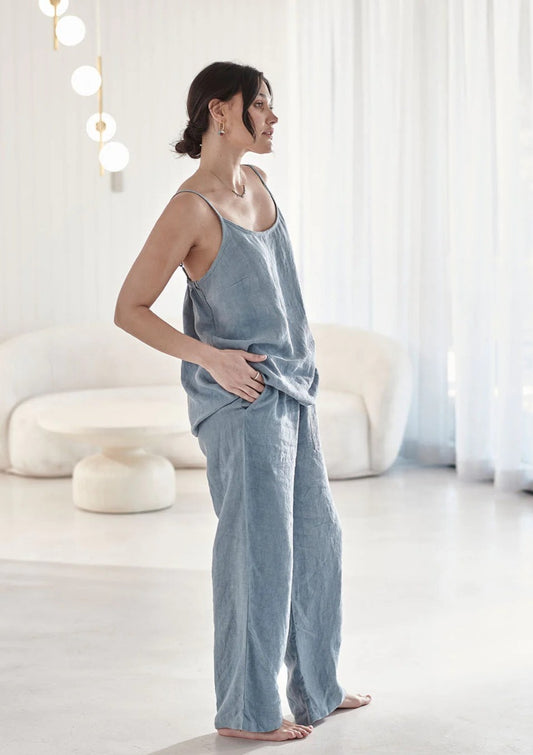Loungewear Linen Cami - Off White & Nutmeg Fine Stripe
