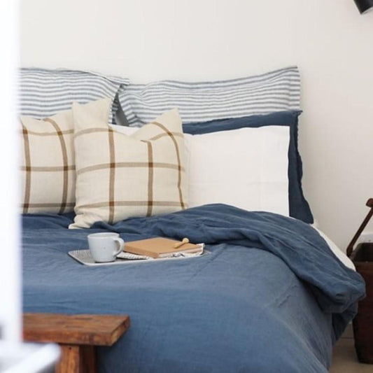 Blue Striped Linen Euro pillowcases | Oeko-Tex®