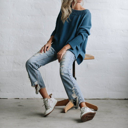 Sold outBoatneck Sweater | Teal Blue