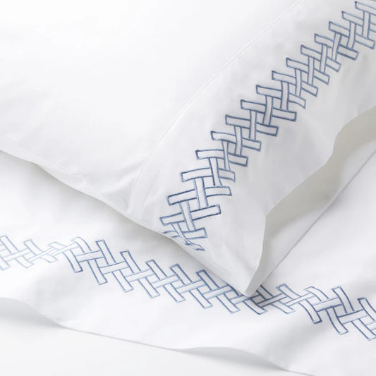 Luxury Rattan Weave Embroidered Flat Sheet Set | Mediterranean Blue
