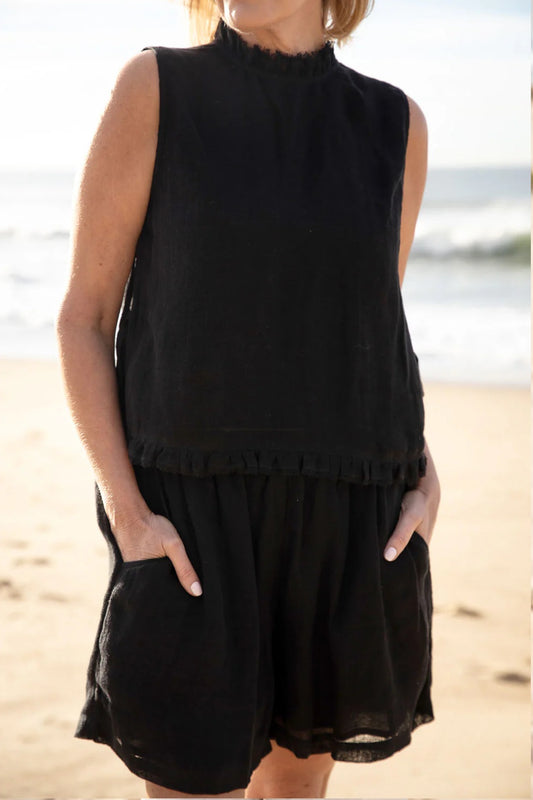 Gauze Linen Shorts | Black
