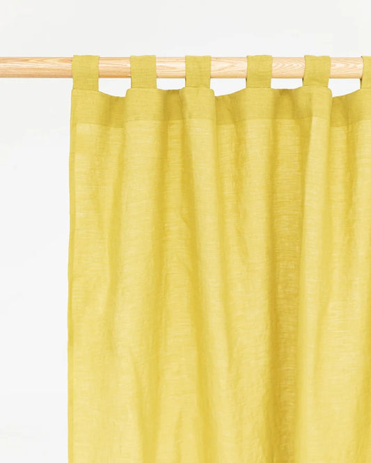 Natural Linen Stonewashed Curtains | Lemon Yellow