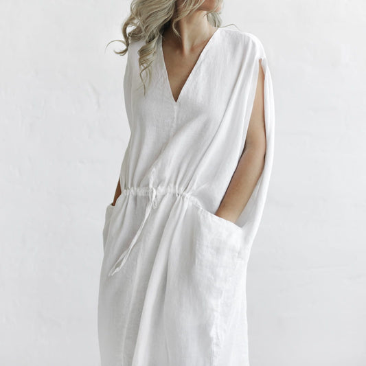 Drawstring Linen Dress | white