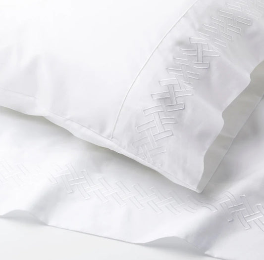 Luxury Rattan Weave Embroidered Flat Sheet Set | White