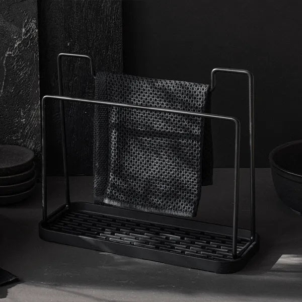 Store dish brushes, soap, and towels all in one place. Use the universal silicone tray as a stand alone unit or with the steel holder.