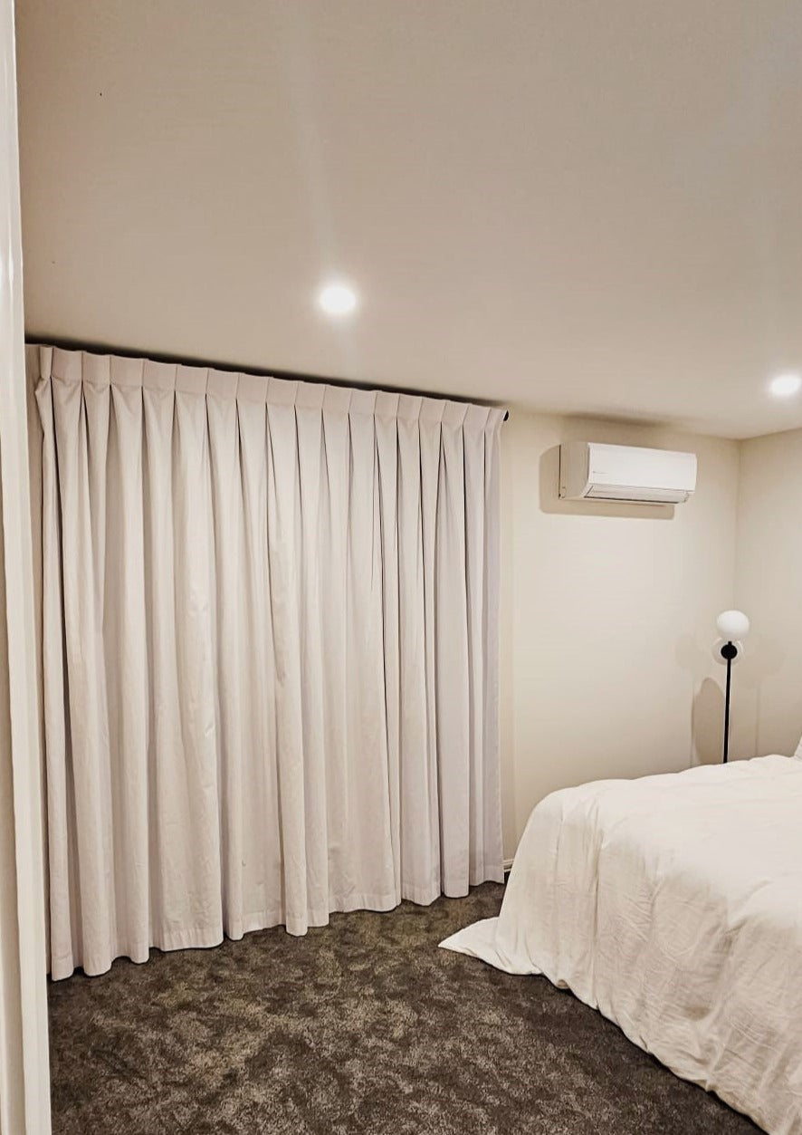 Box or Inverted pleat linen window curtains - carefully handmade in New Zealand.