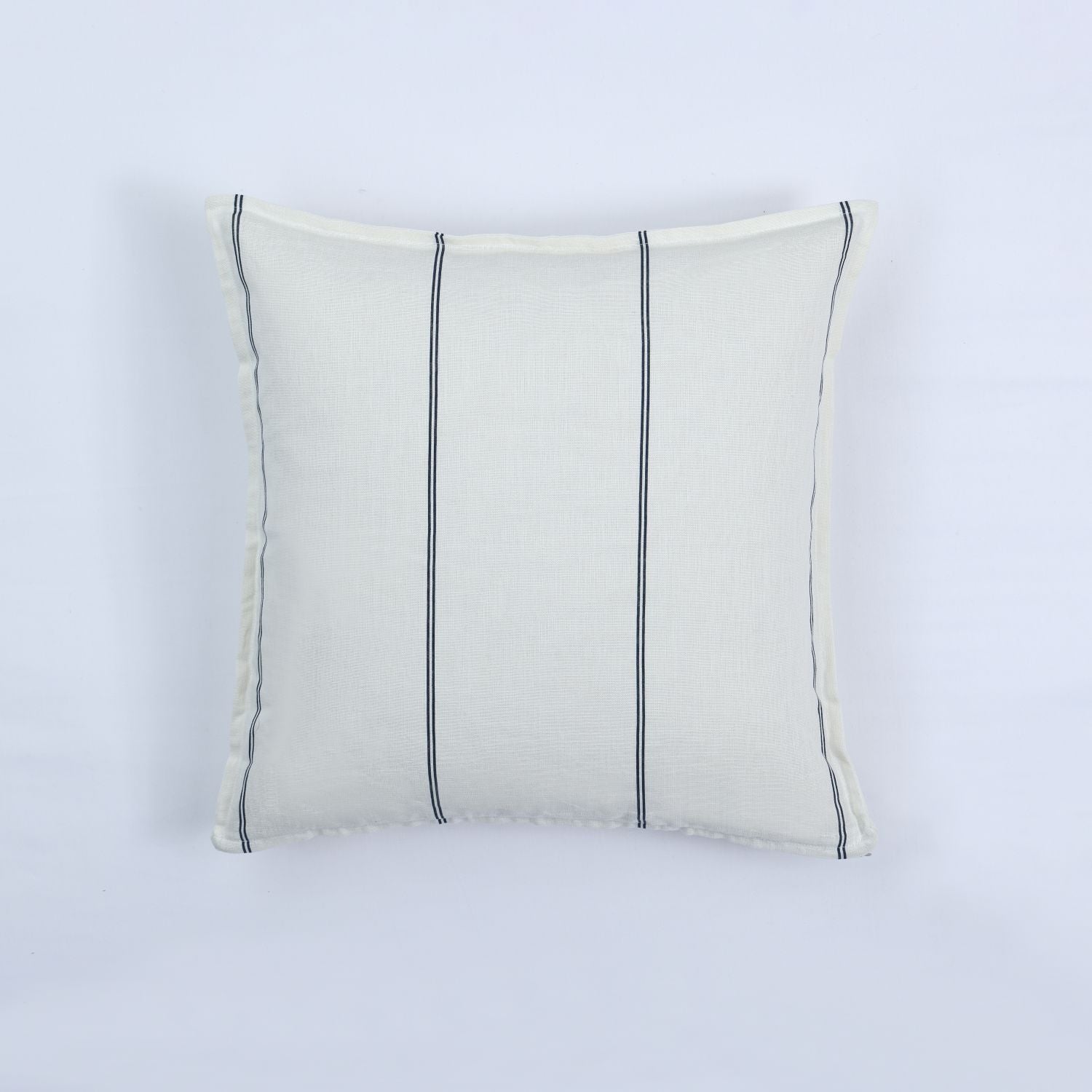 Bring a touch of understated coastal elegance into your home with the Cape Cushion. Crafted from premium natural linen, its soft ivory base is beautifully accented with fine navy stripes – a timeless pairing that feels fresh yet effortlessly classic.