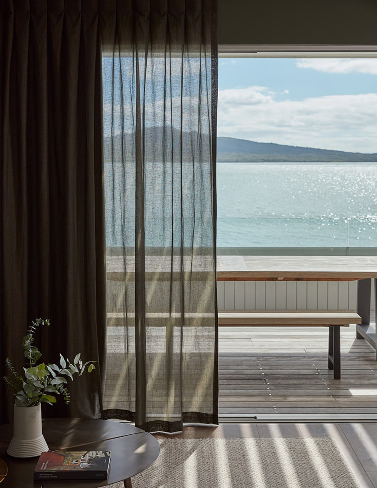 Cavalier offers the appearance and feel of fine linen while maintaining exceptional durability—perfectly suited to withstand New Zealand’s changing environmental conditions. The wide-width fabric drapes effortlessly, creating a soft, elegant frame that enhances natural light and complements any interior view.
