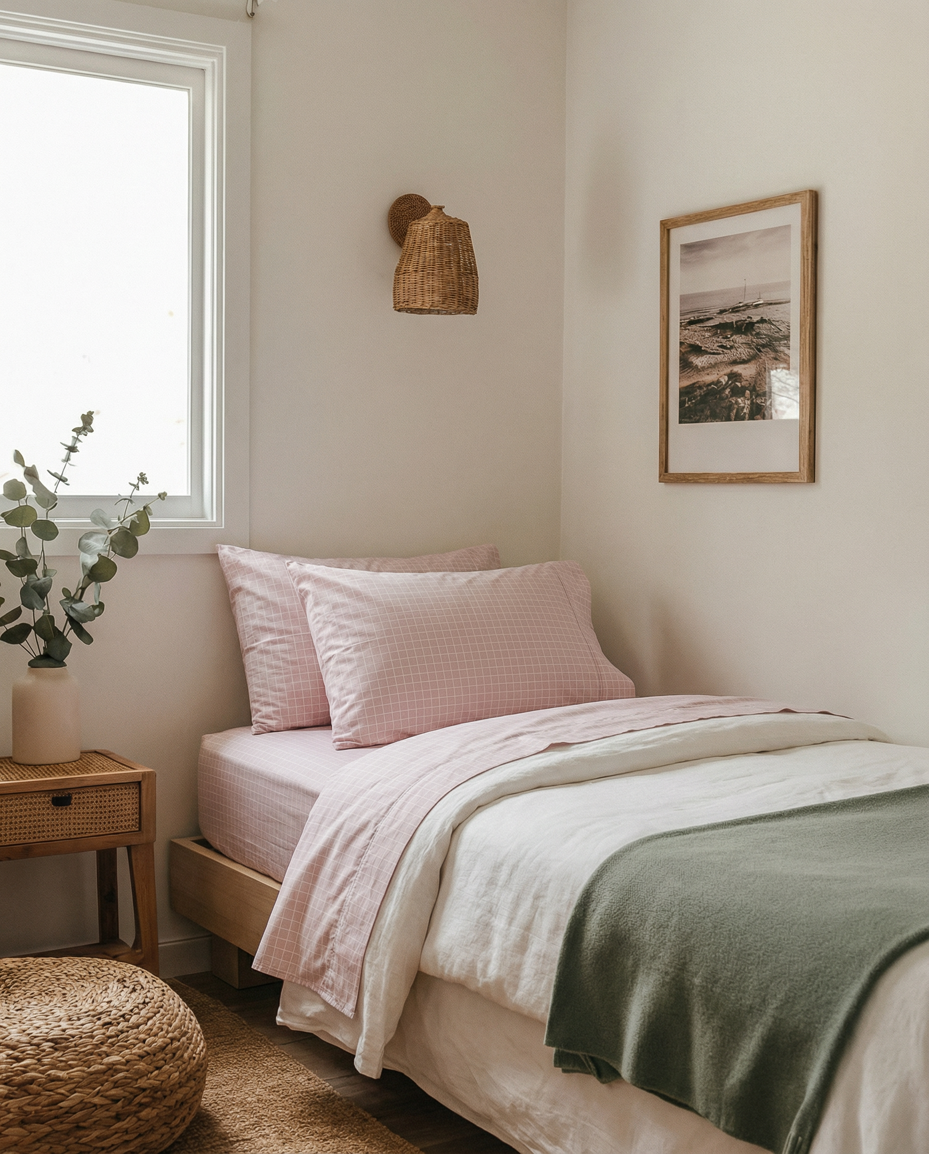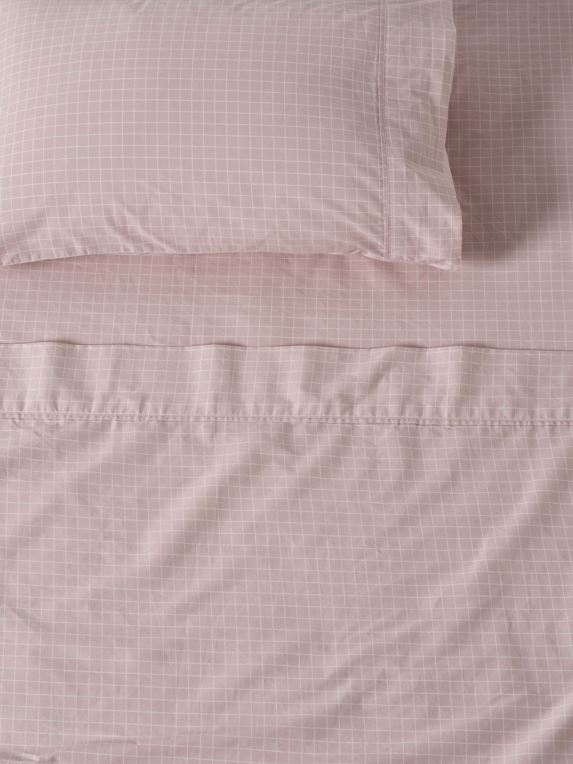 The windowpane check takes on a bolder aesthetic, Designed to elevate any style of interior, the fitted sheet enjoys a 50cm wall while the flat sheet and pillowcases are both cuffed and piped for a dapper finish.