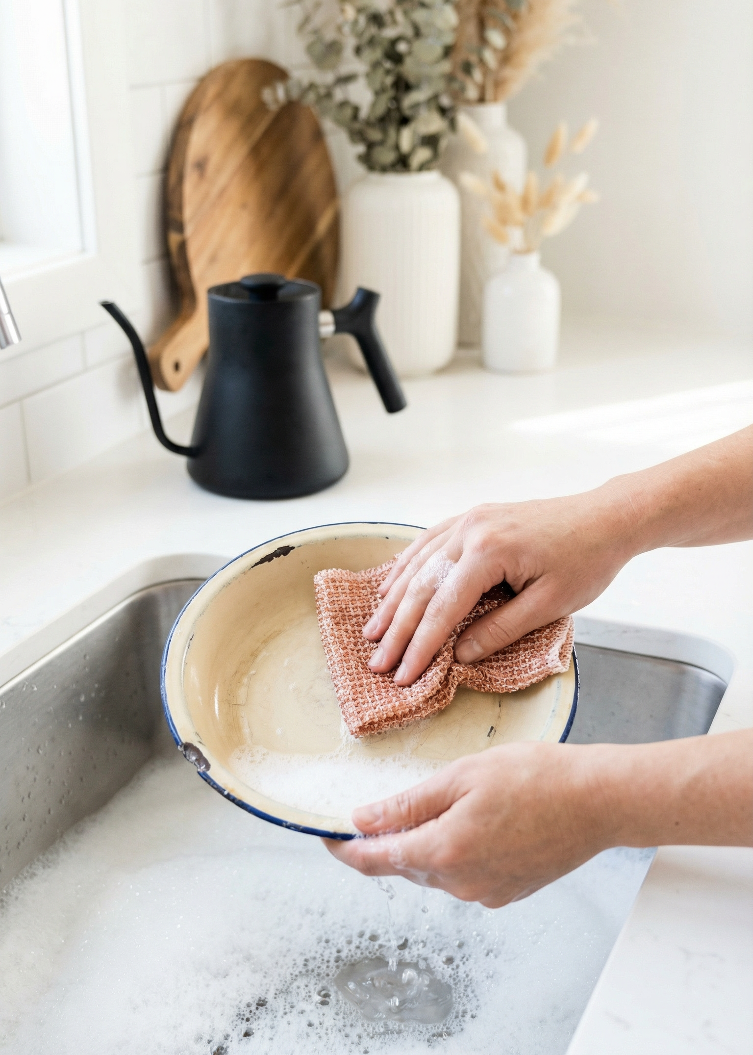 The copper fibre also has the added benefit of polishing sinks, pans, ovens, ceramic cook tops, glass and stainless steel basins as it cleans.