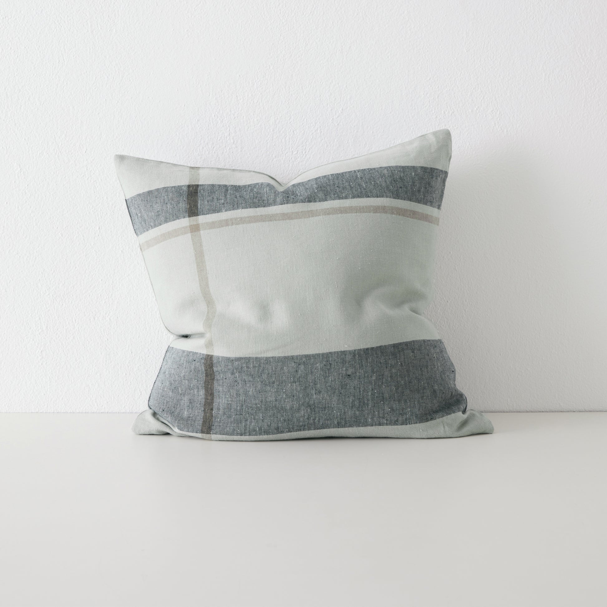 A soft wash of green-grey tones meets deep charcoal plaid in the Dante Linen Cushion in Laurel. This contemporary yet organic palette evokes a sense of calm, making it a perfect styling piece for serene bedrooms or relaxed living spaces.