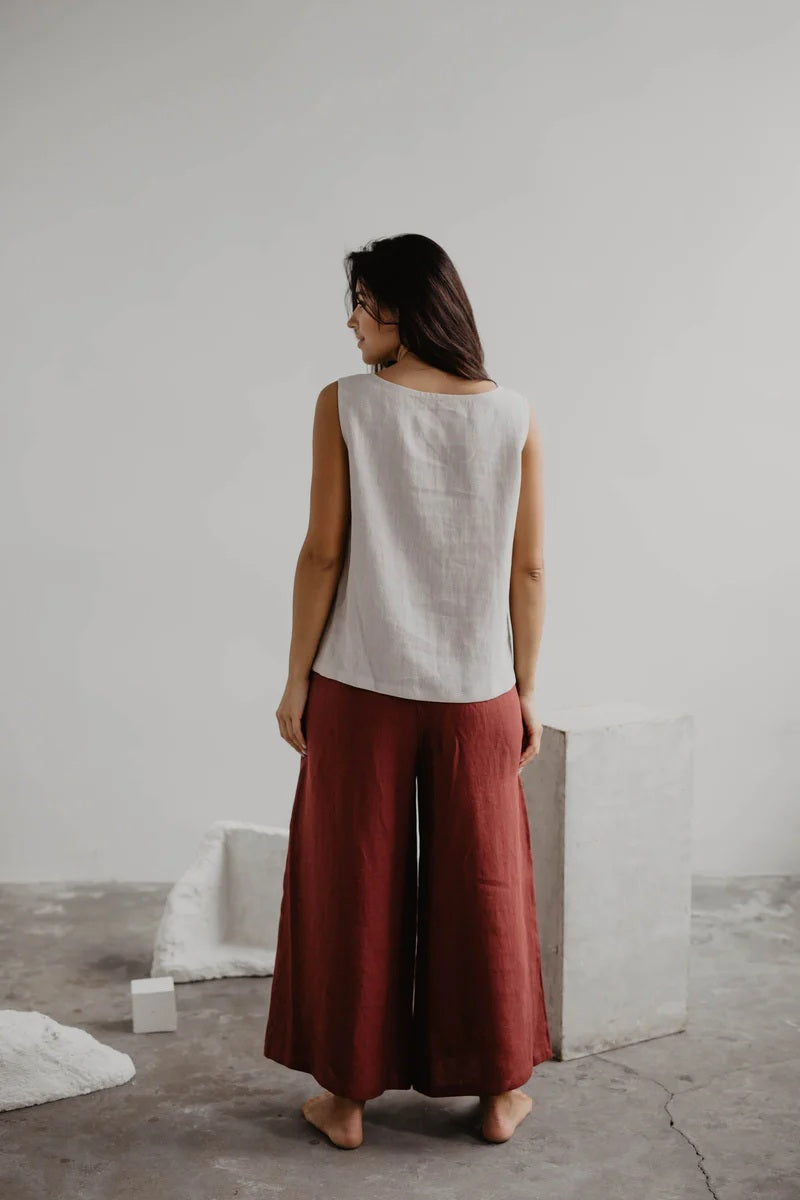 The Isabella Wide Linen Pants in Terracotta are your go-to for effortless elegance. Whether you're heading out for a sun-drenched lunch or slipping into something relaxed yet refined for a celebration, these wide-leg trousers bring grace to any occasion.
