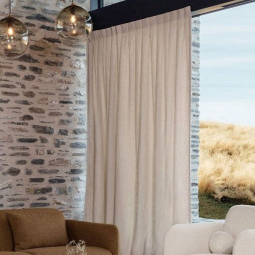Box pleat linen window curtains - carefully handmade in 100% pure natural linen fabric. Unlined,