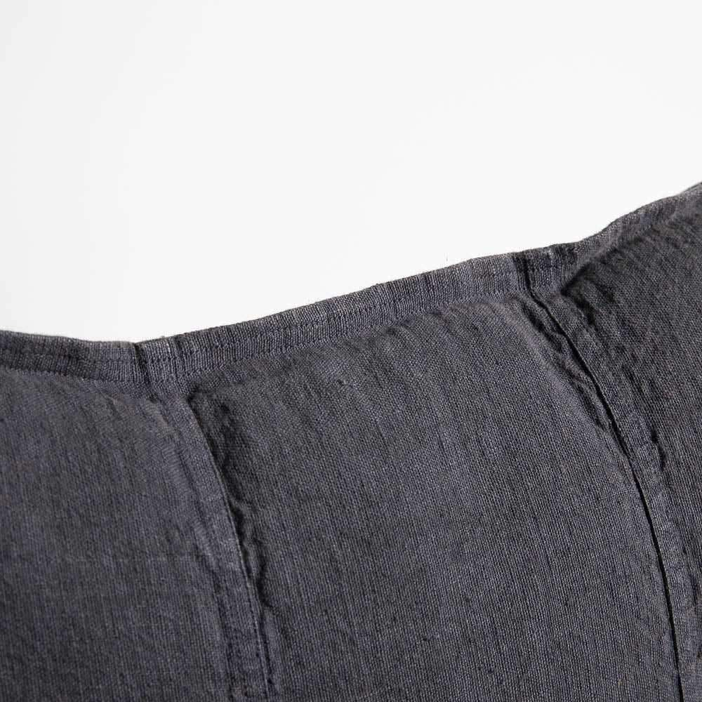 The Midnight colourway is a deep, inky charcoal-black, garment-dyed to create rich tones and subtle variations that feel both timeless and modern. Crafted from 100% pre-washed European linen (300 GSM), it combines durability with an ultra-soft hand feel, becoming even more supple with every wash.
