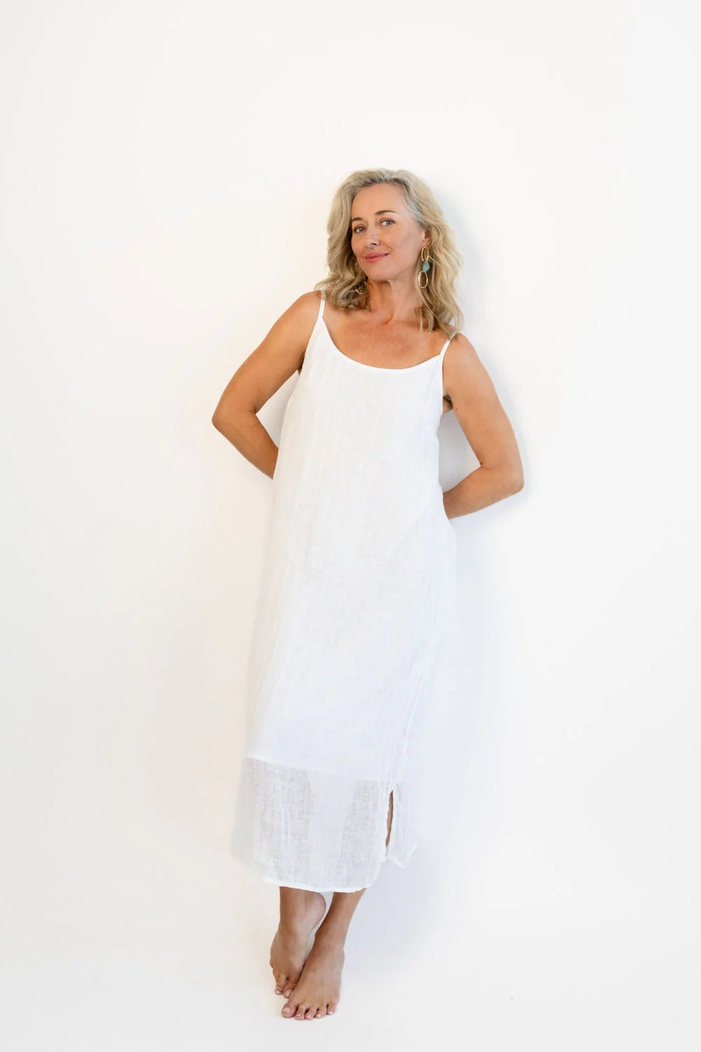 With its simple slip silhouette, adjustable straps, and relaxed fit, this dress is as comfortable as it is versatile. Pair it with sandals for a coastal-inspired look, or style it with a cardigan or jacket for effortless layering.