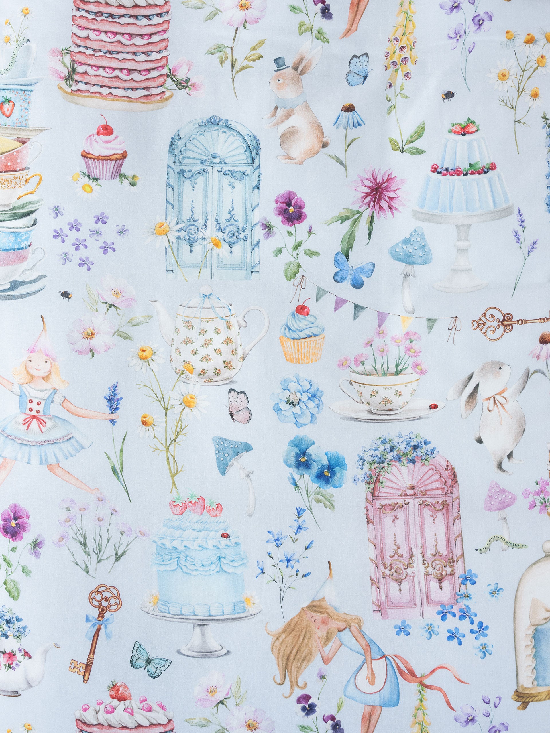 Tumble into Magic Meadow, where fairies twirl, bunnies explore and every teacup hides a tin surprise! Set against a soft blue base, this enchanting 100% cotton duvet cover is sprinkled with fluttering butterflies, towering toadstools, pastel cakes and floral treasures waiting to be discovered. Perfect for little dreamers, this magical world reverses to a blushing pink check print, the perfect match to the co-ordinating Blush sheeting (sold separately).