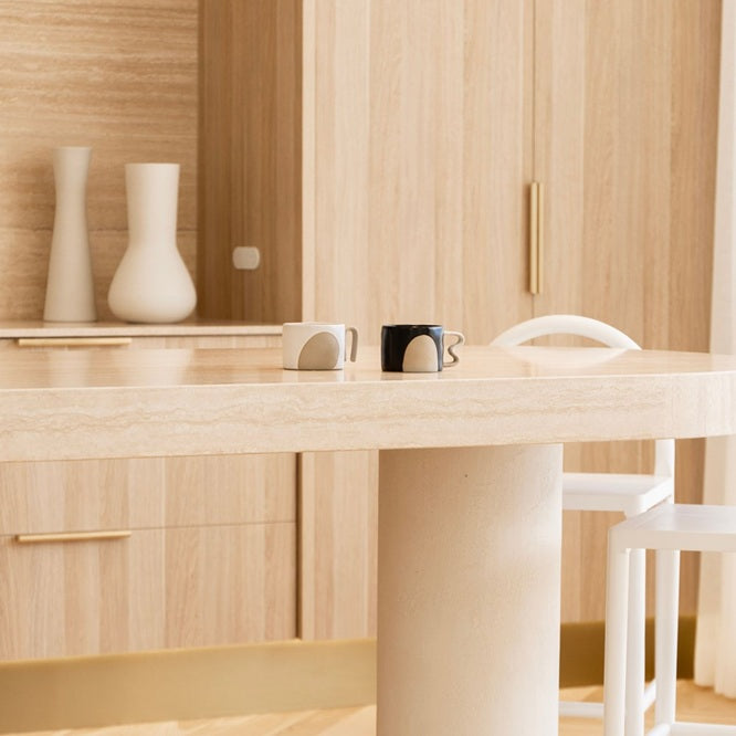 Crafted from high-quality stoneware, each piece features a hand-finished design with a smooth glaze and tactile matte detail, creating a striking contrast of texture and tone.