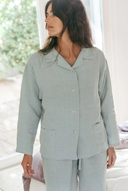 There’s a softness to Sage — earthy, serene, and grounding. Our Sage Linen Pyjama Set is crafted for slow mornings and restful nights, bringing with it the soothing palette of nature and the tactile luxury of pure linen.