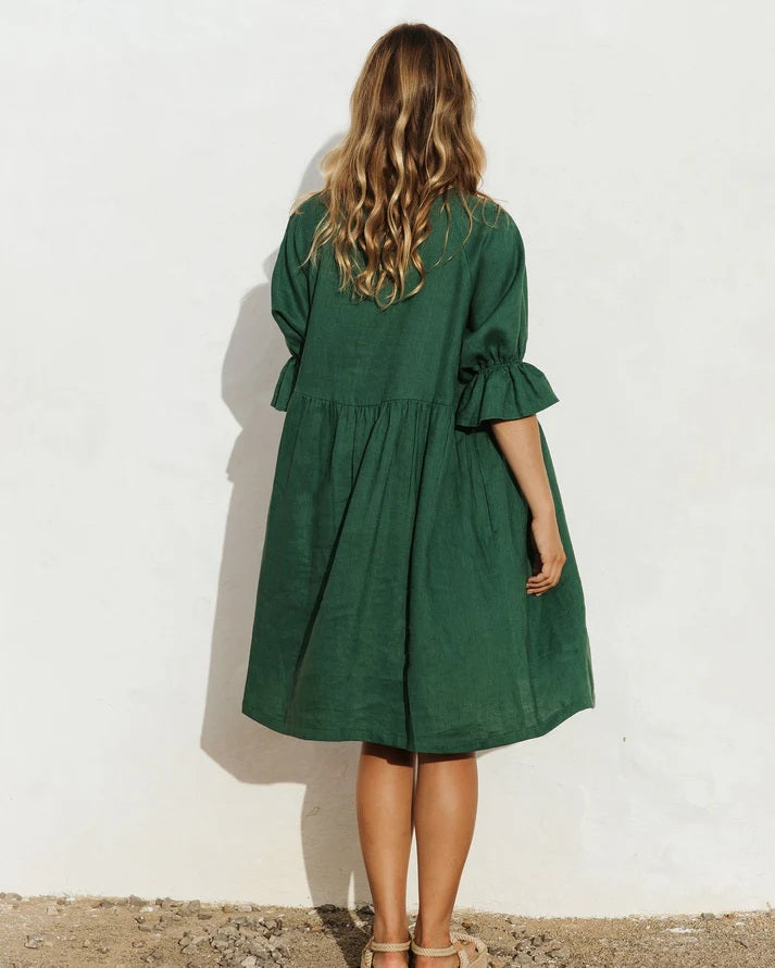 Take yourself on a date (or anywhere you please) in the Voluminous Linen Dress in Green — a playful yet chic piece designed to make every day feel like an adventure.