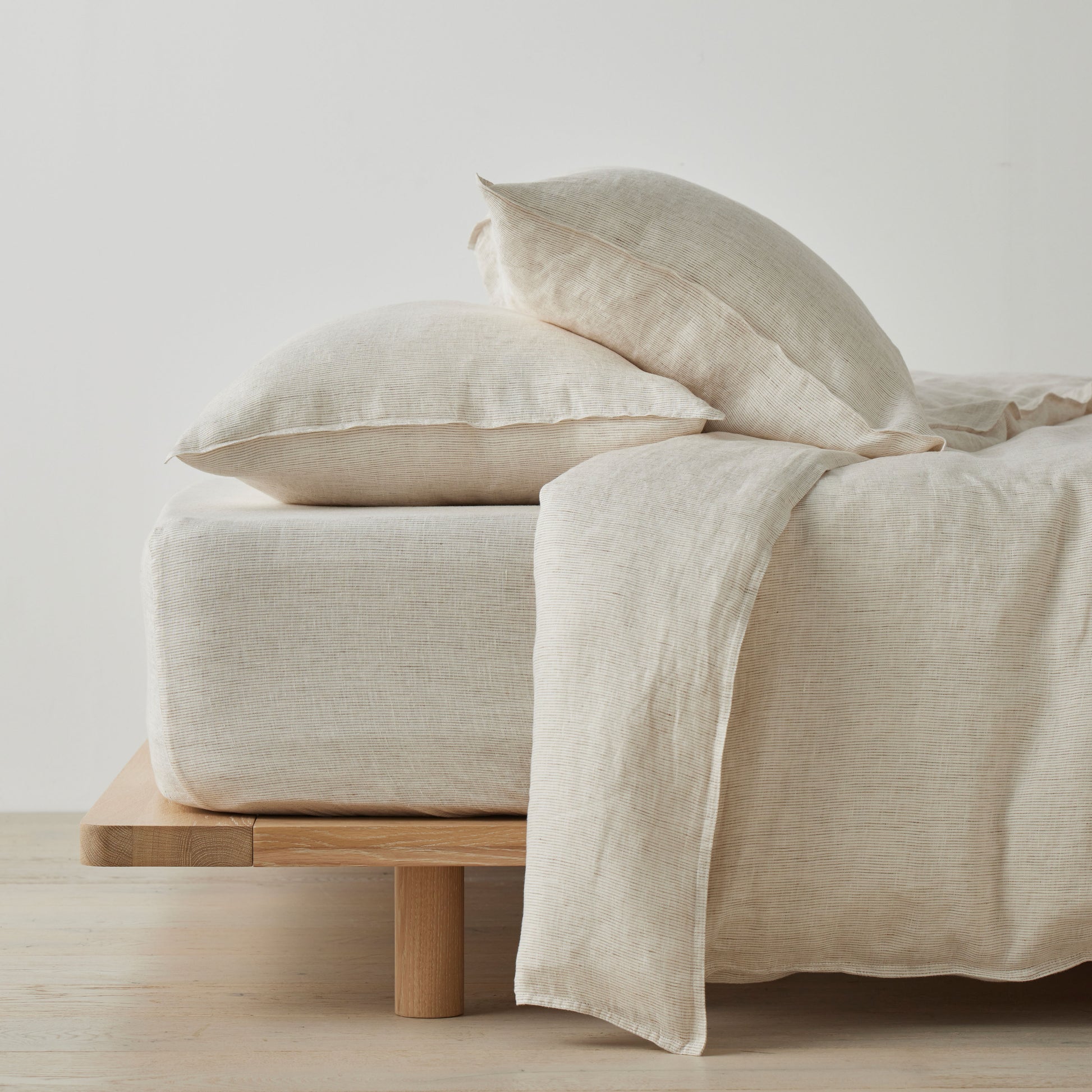 Crafted from 100% premium European linen, the Savanna bedding range features a delicate threaded pinstripe, perfectly suited to both classic and contemporary interiors. Finished with an aero-wash process, this fabric has a luxuriously soft, relaxed feel that only gets better with time.